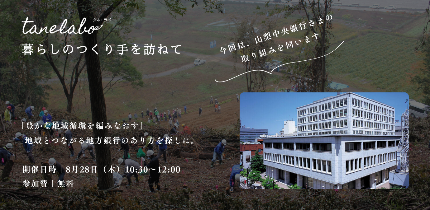 tanetoではこれまで、研究機関と連携しながら山梨県内で自然や環境に配慮した活動を取材したり、さまざまなワークショップを企画してきました。その中で感じたのは、変わってしまう世界に不安を募らせるのではなく、自分たちの手で、ありたい暮らしをつくっていくことの大切さ。実際にその場に身を置き、体験を通じて学び合える場が必要だと感じ立ち上げたのが「tane labo」です。